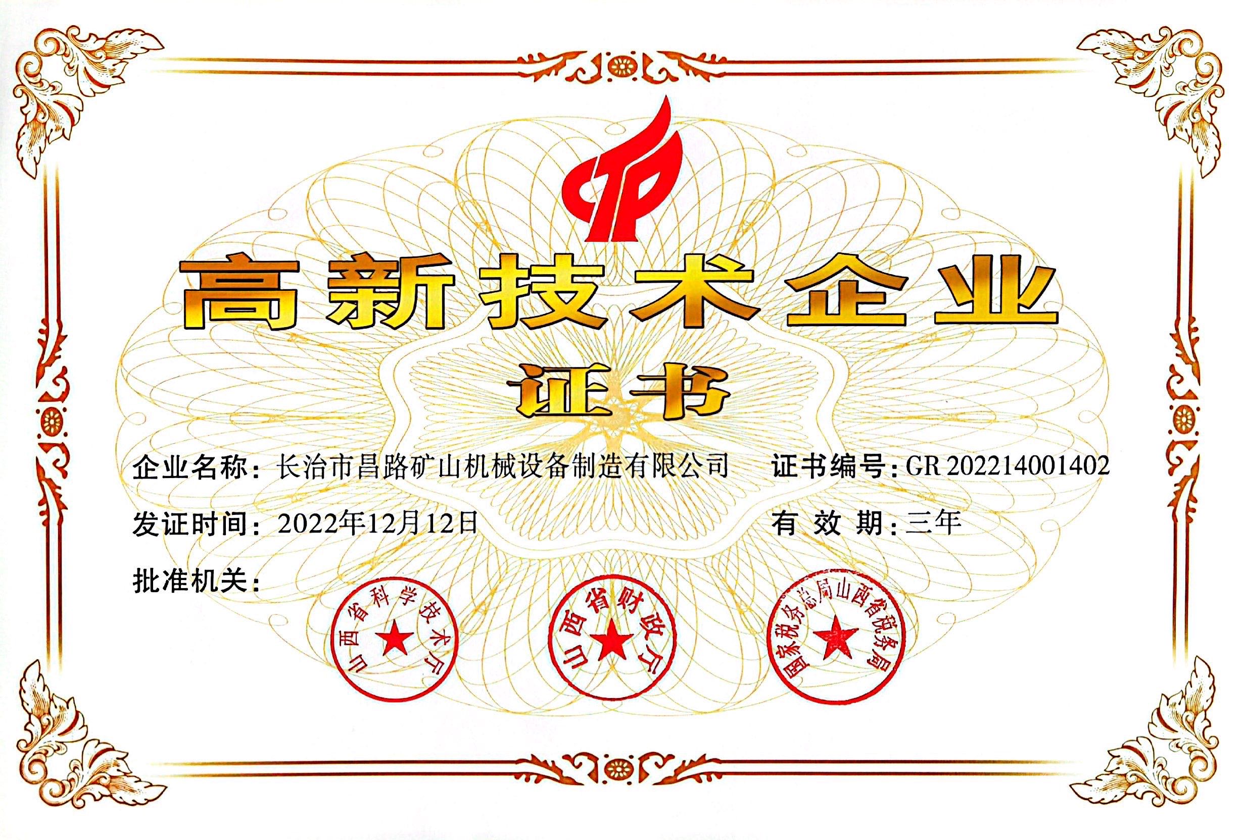高新技術(shù)企業(yè)證書(shū)